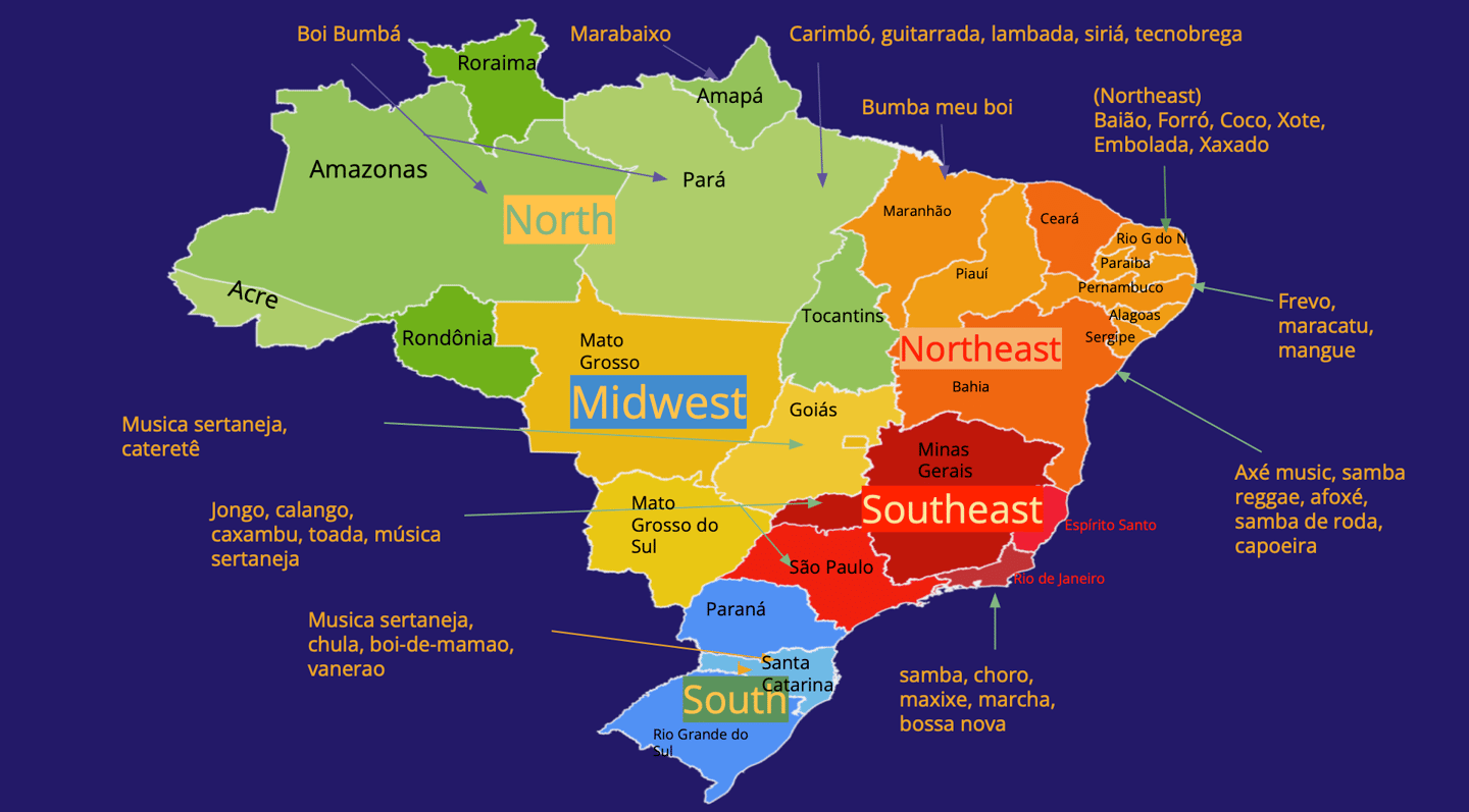 Brazil’s musical traditions go far beyond samba and bossa nova. Each region is home to rich, complex traditions born of Indigenous, African, and European intersections. This page introduces five lesser-known styles, each with unique rhythms, instruments, and stories.