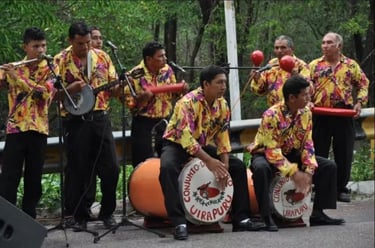 Carimbó is a traditional music and dance style from northern Brazil, specifically the coastal region of Pará and the Amazon basin. It originated from the cultural practices of the Tupinambá people and was later influenced by African rhythms, especially batuque, brought by enslaved people. The name “carimbó” comes from the Tupi language, “curi” meaning hollow trunk and “m’bo” meaning hollowed out, referencing the main instrument: a hand-played drum made from a hollowed tree trunk with an animal skin head. Carimbó was further shaped in the 19th century by Afro-Brazilian communities and became a staple of Amazonian coastal life, particularly among local fishermen.