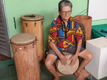 Carimbó Drum (Curimbó): Made from hollow tree trunks with animal skin heads.